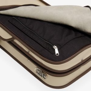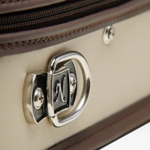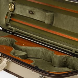 The Lord Croco violin case is made of a wooden structure protected by an elegant and resistant full grain ivory cow leather cover. The interior is made with the highest quality olive green velvet microfiber combined with a special Mahogany Wood placement. It includes one big compartment for accessories, large exterior zippered pocket for music sheets, 4 “two- position” bow spinners, high security dual-mechanism lock,a comfortable real leather handle and the most advanced protection system by suspension over 3 points.